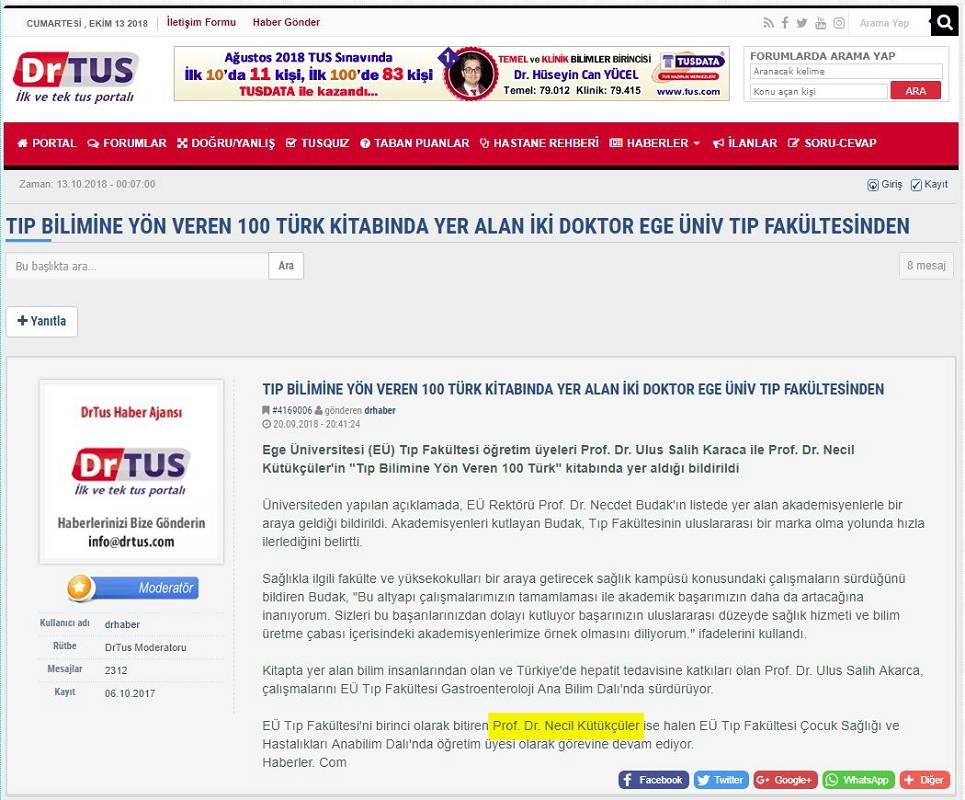 Prof.Dr. Necil Kütükçüler’in çeşitli Basın-yayın organlarında yayınlanan görselleri…